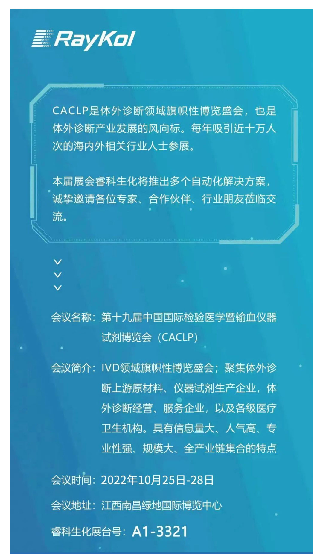 CACLP 2022 | 睿科生化創新智造,誠邀您蒞臨